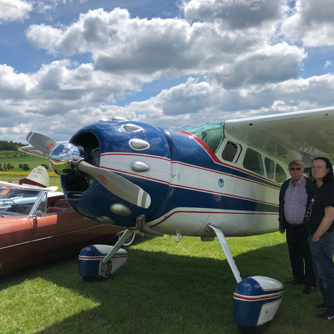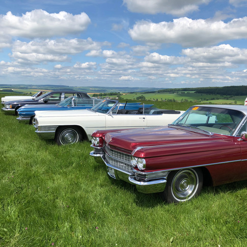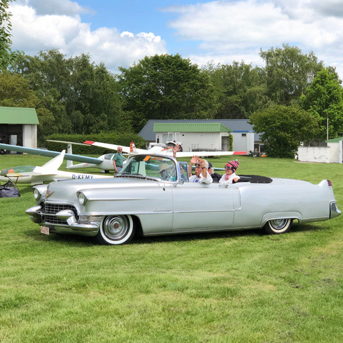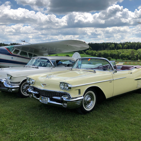 May 29th 2019 and the German section of the Cadillac Owners Club was having their annual meeting and tour. Fifty-five spectacular Cadillacs came together in Wiesbaden, including cars normally based in Switzerland, Austria and the Netherlands. Their tour included an extended lunch-stop hosted by the Aero-Club Nastätten, so naturally the Bulldog Motor Collection needed to join their festivities, represented by the beautiful and stylish 1935 Bentley 41/4 Sports Saloon. Everybody has heard of Cadillac cars but what is less well-known is that the famous old plane, the Cessna 195, was also known as "The Flying Cadillac" and two of these wonderful old planes were also there to enjoy the fun.